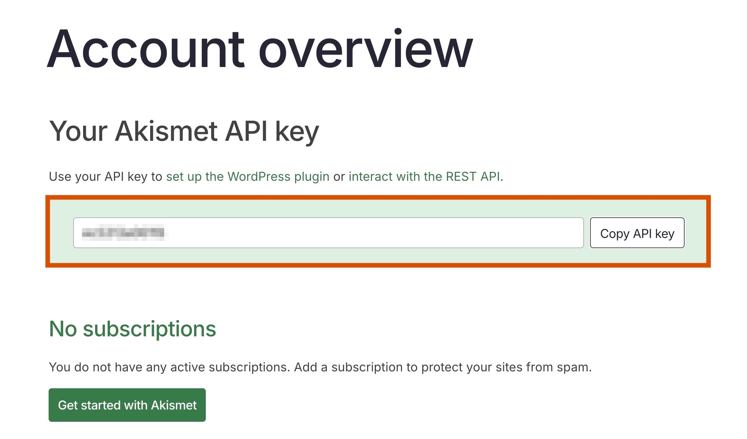 לאחר שעשיתם זאת פשוט העתיקו את מפתח ה API וגשו לממשק הניהול של וורדפרס > הגדרות > אקיזמט אנטי-ספאם, הכניסו אותו בשדה המבוקש ושימרו.