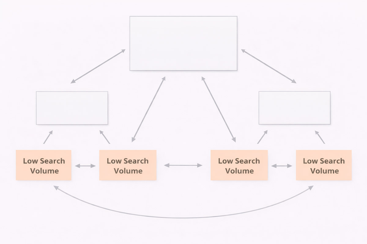 Instead of chasing high-volume phrases, you target many long-tail keywords with lower individual search volumes. These usually map to individual blog posts or specific product pages.